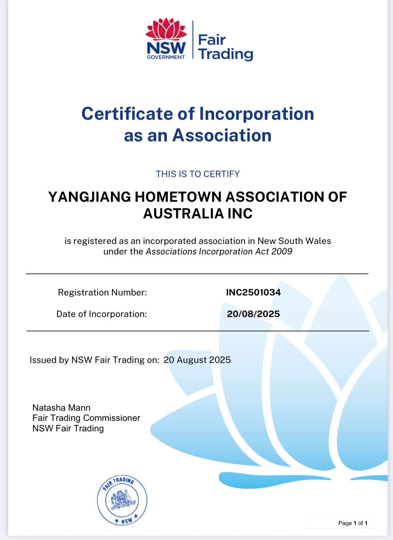4. 同乡会注册地址:U1 G 55-59 Parramatta Road, Lidcombe