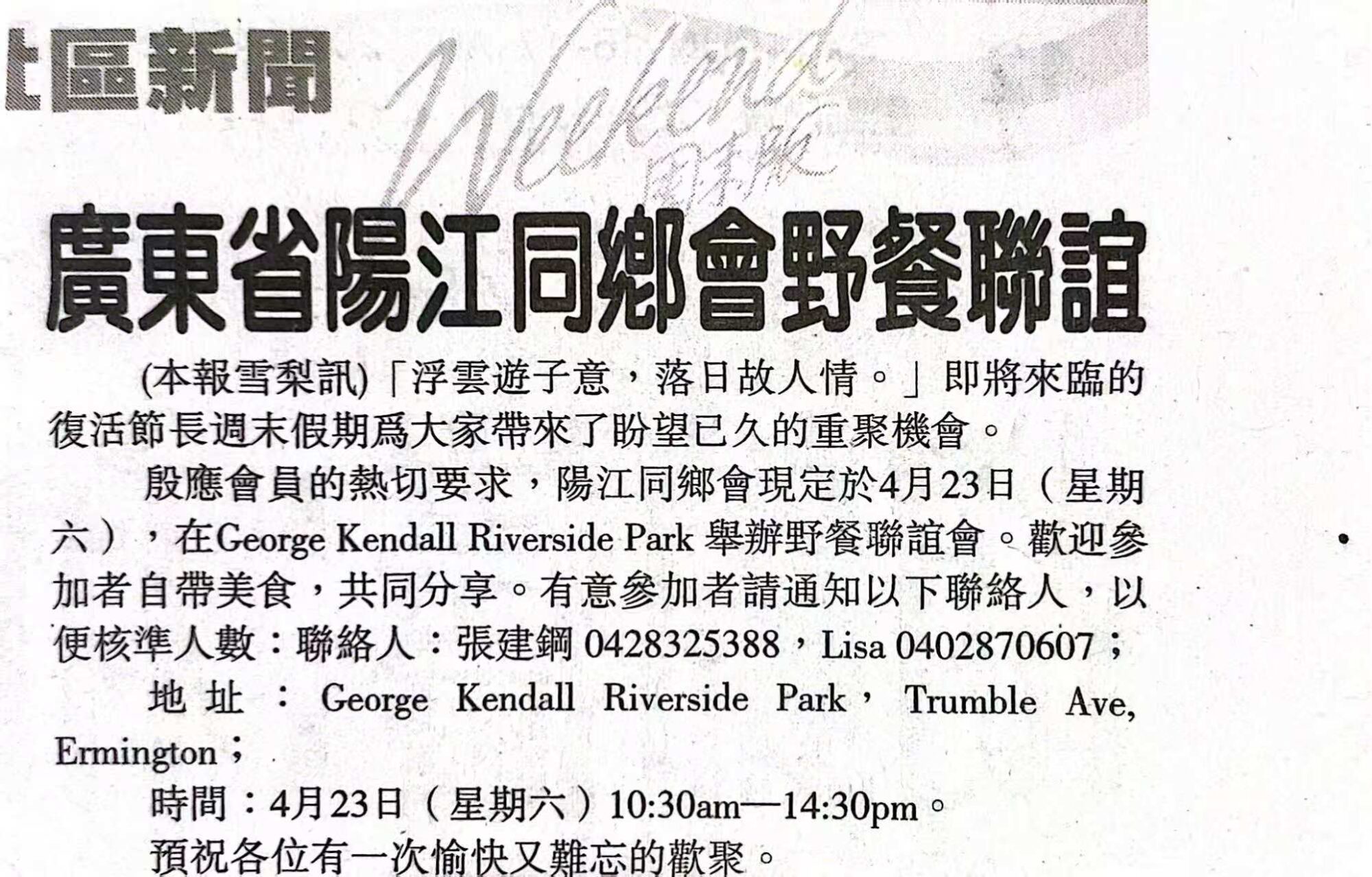 澳大利亚阳江同乡会举办复活节家庭同乐日 欢聚一堂、共享欢乐